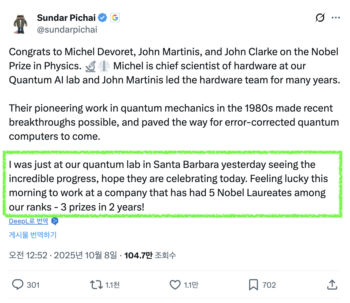 ๊ตฌ๊ธ์ ์  2์ ๋ฒจ ์ฐ๊ตฌ์๋ผ๋ ๋ณ์นญ์ด ๋์ฌ ์ ๋๋ก ๋ค์ํ ๊ณผํ ์์ญ์ ๊ฑธ์ณ ์ฐ๊ตฌ๋ฅผ ์ด์ด์ค๊ณ  ์์ด. ํนํ๋ AI๋ฅผ ํ์ฉํ ์ฐ๊ตฌ๋ก๋ ๋ฐ๋ผ์ฌ ์ฐ๊ตฌ์๊ฐ ์๋ค๋ ์๊ฐ์ด ๋ค ์ ๋๋๋ผ๊ณ . ์ฐจ์ธ๋ ํต์ตํฉ ์๋์ง์ AI๋ฅผ ๋์