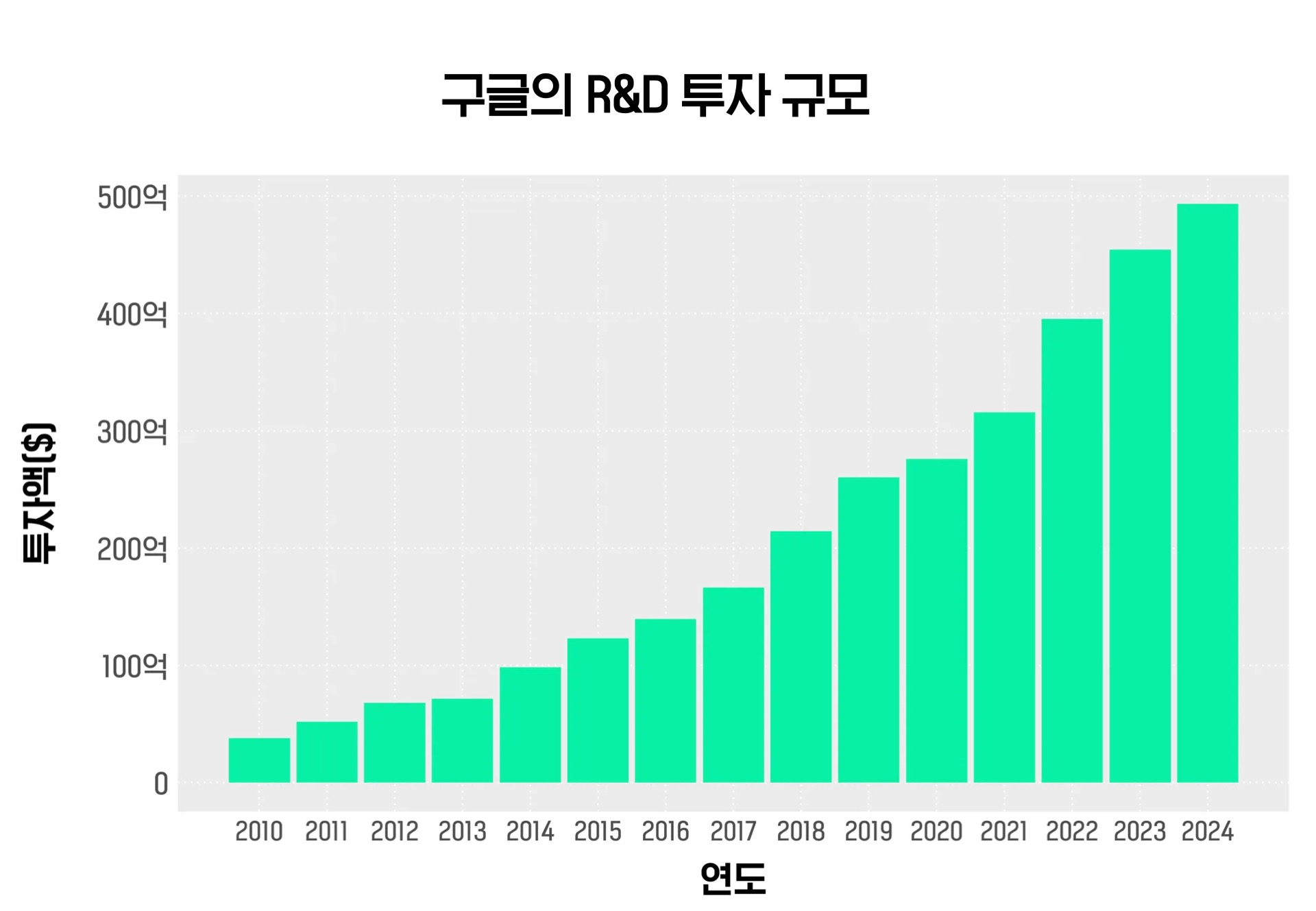 ๊น์ง ๊ตฌ๊ธ์ R&D ํฌ์ ๊ท๋ชจ๋ฅผ ๊ทธ๋ ค๋ดค์ด. 2010๋