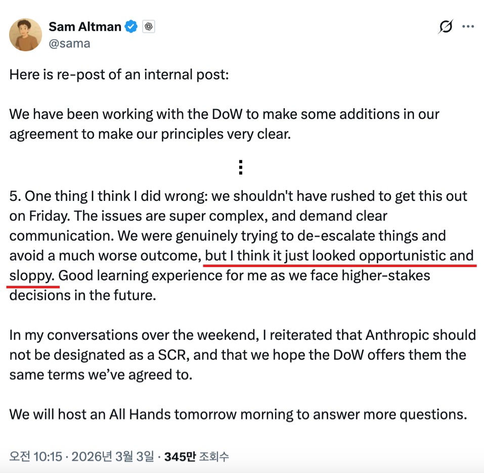 ์ ์ฌํธ๋จผ์ ์นํธ๋ผํ ๋ชจ์ต๊ณผ ๊ตญ๋ฐฉ๋ถ ๊ณ์ฝ ๊ฑด์ด ํฐ์ง๋ฉด์ ์คํAI ๋ถ๋งค์ด๋ ๋ฐ๋๋ ์ปค์ง๊ณ ์์ด. ์ฑGPT ์ ๋ฃ ๊ตฌ๋