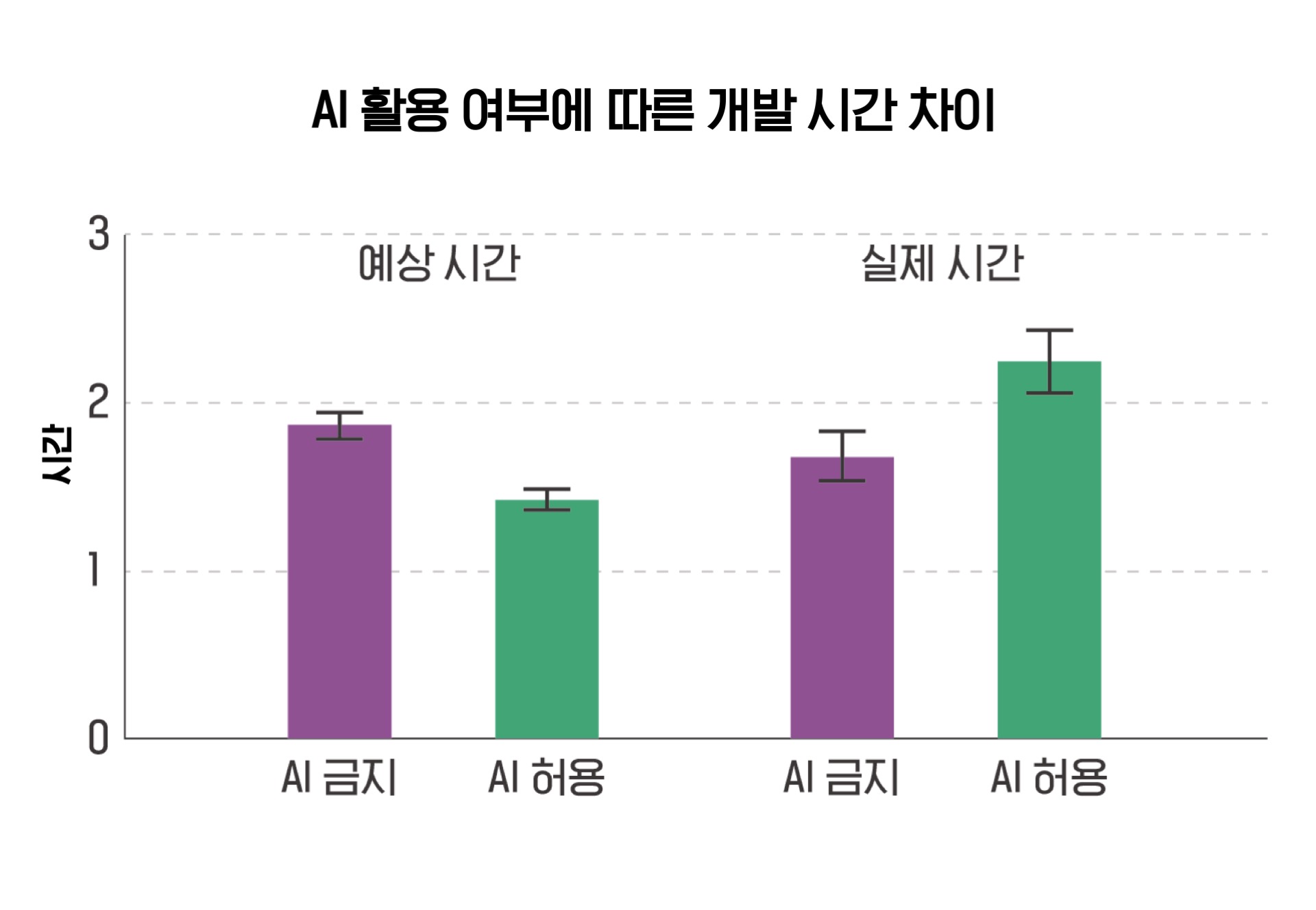 ํ๋ฉด 1์๊ฐ ๋ฐ, ํผ์ ํ๋ฉด 2์๊ฐ ์ ๋ ๊ฑธ๋ฆด ๊ฑฐ๋ผ๊ณ ์์ธกํ์ด. ํ์ง๋ง ์ค์ ๋ก๋ ์ ๋ฐ๋์์ด. AI๋ฅผ ํ์ฉํ์ ๋ ์๊ฐ์ด ๋ ๊ฑธ๋ ธ์ง.