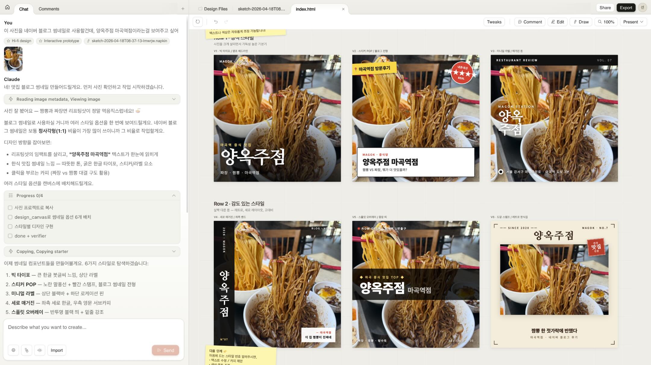 ํด์ฃผ๋ฉด, ํด๋ก๋ ๋์์ธ์ด ์ด์์ ๋๋ฑ ์์ฑํด์ค. ๊ทธ ์ดํ์๋ ๋ํ๋ก ํผ๋๋ฐฑ์ ํด์ฃผ๊ฑฐ๋ ์์ ํ ๋ถ๋ถ์ ๋๊ธ์ ๋จ๊ธฐ๊ฑฐ๋, ๋๋ก๋ ์ฌ์ฉ์๊ฐ ์ง์ ํธ์ง์ ํตํด ๊ฒฐ๊ณผ๋ฌผ์ ์์ฑ์์ผ ๋๊ฐ ์ ์์ง. |