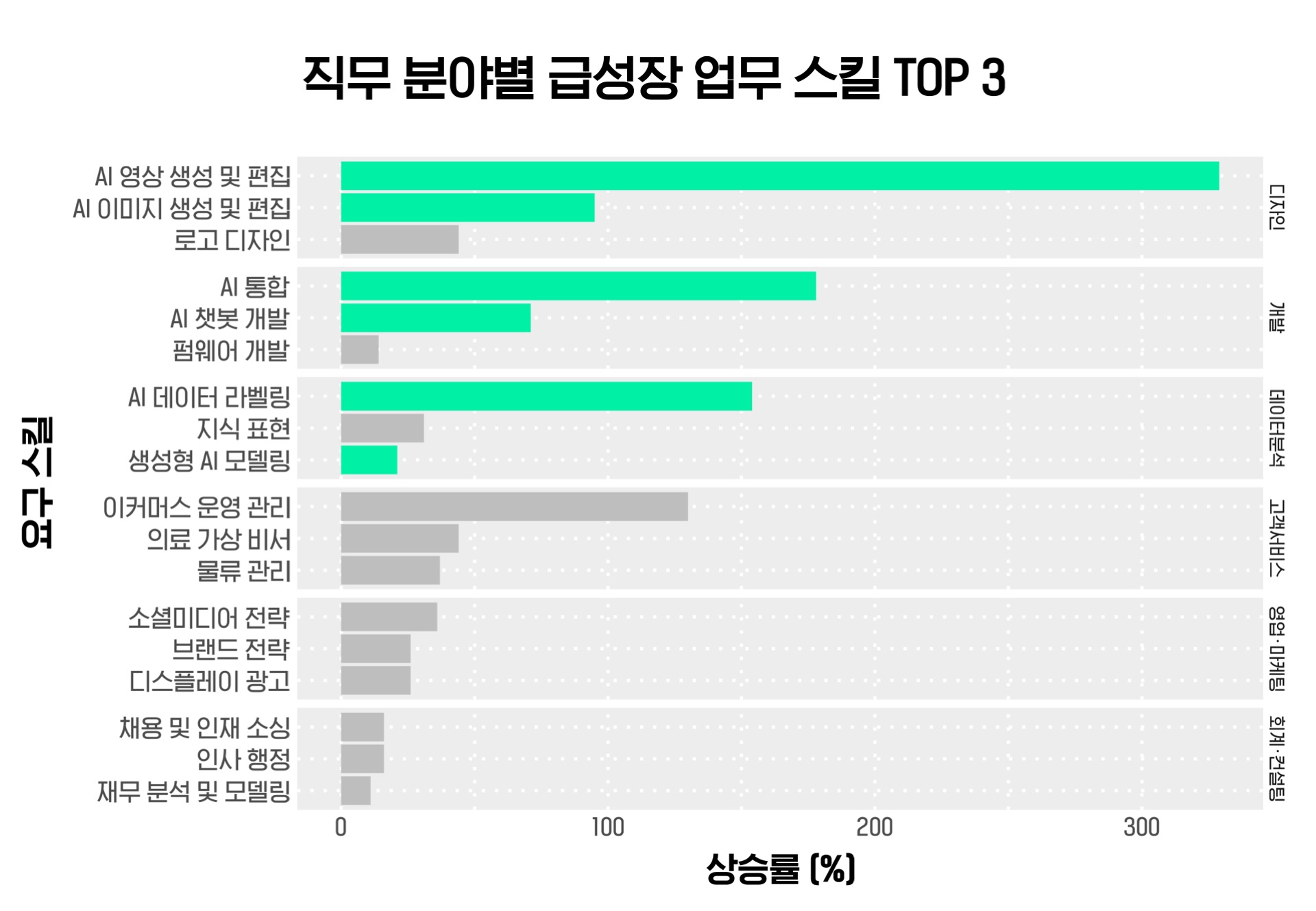 ๋๋น 329%๋ ์ฆ๊ฐํ์ด. ์์๋ฟ ์๋๋ผ ์ด๋ฏธ์ง ์์ญ์์๋ AI๋ฅผ ํ์ฉํ ์์ฑ, ํธ์ง ์์๊ฐ 95%๋ ๋์์ง. ๋์์ธ ์์ญ๋ฟ ์๋๋ผ ์ฝ๋ฉ, ๋ฐ์ดํฐ ๋ถ์ ์์ญ์์๋ AI ๊ด๋ จ ๊ธฐ์ ์์๋ ์ ๋